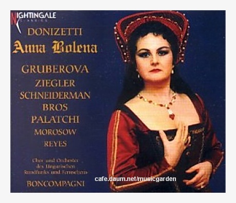 Donizetti Anna Bolena (Act II) Duetto Dio, che mi vedi in core... Al par del mio... Va, infelice, e teco reca 신이여, 내 마음을 아시는 이여 Dio, che mi vedi in core... Va', infelice, e teco reca ANNA Dio che mi vedi in core, mi volgo a te, o Dio... Se meritai quest'onta giudica tu, tu giudica tu, o Dio. GIOVANNA Piange l'afflitta... Ahi! come ne sosterrò lo sguardo? ANNA Ah! sì, gli affanni dell'infelice Aragonese inulti esser non denno, e a me terribil pena il tuo rigor destina... Ma terribile e troppo...troppo GIOVANNA O Regina! ANNA Seymour!.. a me ritorni Non mi obliasti tu?... Sorgi... Che veggio! Impallidisci? Tremi?... A me tu rechi nuova sventura forse? GIOVANNA Orrenda... Estrema... Gioia poss'io recarvi? Ah!no:m'udite. Tali son trame ordite, che perduta voi siete. Ad ogni costo vuol franti il Re gli sciagurati nodi che vi stringono a lui... La vita almeno... se non il reggio nome, la vita almen, deh! voi salvate! ANNA E come? Spiegati. GIOVANNA In dirlo io tremo... Pur dirlo io deggio. Il confessarvi rea, dal Re vi scioglie e vi sottragge a morte. ANNA Che dici tu? GIOVANNA La sorte che vi persegugue, altro non lascio a voi mezzo di scampo. ANNA E consigliar mel puoi? tu, mia Seymour! GIOVANNA Deh! per pietà. ANNA Ch'io compri con infamia la vita? GIOVANNA E infamia e morte volete voi? Regina!... oh ciel, cedete... Ve ne consiglio il Re... ve ne scongiura la sciagurata che l'amor d'Enrico ha destinato al trono. 이하 중략 ' ' 도니체티는 16세기 영국 황실의 세 여왕 혹은 왕비 얘기를 일련의 오페라로 작곡했다. 이른바 '여왕 3부작'이다. 이중 첫 번째 얘기가 '안나 볼레나'인데 바로 앤 볼린을 이탈리아식으로 표기한 것이다. 헨리 8세의 화려한 여성 편력은 수많은 비극을 낳았다. 그중에서도 가장 유 명한 것은 3년간 왕비를 지내고 참수형으로 생을 마감한 앤 볼린의 얘기다. 앤 볼린 은 형이 죽자 스페인 공주인 형수 캐서린과 결혼해야 했던 헨리 8세가 사랑에 빠 져버린 궁전 시녀였다. 헨리 8세는 그녀와 결혼하기 위해 캐서린과 이혼해야 했고 교황청이 이를 승인하지 않자 극단적 방법을 취한 것이 영국 성공회의 창립이다. 그토록 사랑했던 앤이 왕자를 낳지 못하자 헨리 8세는 다시 앤의 시녀 제인 세이모어에게 눈길을 돌리고. 이번엔 제인과 결혼하기 위해 앤에게 온갖 죄목을 갖다 붙여 처형해 버린 것이다. Anna Bolena - Edita Gruberova, sop Giovanna Seymour - Delores Ziegler, mezzo-sop Hungarian Radio Chorus and Orchestra Elio Boncompagni, cond 1995년 녹음